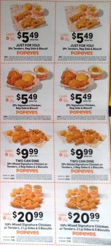POPEYES Coupon for Free 2 PC and Biscuit Meal After Survey Apr 16, 2002 24094 posts 32571 upvotes Toronto interesting part of the survey "Had you seen any Popeyes advertising mentioning Pay Day, our 8 piece Bonafide Chicken for just $5.99?" wonder if it is on April 3 in USA too? Here it is $8.99 that day. you can skip the survey, enjoy the coupon below